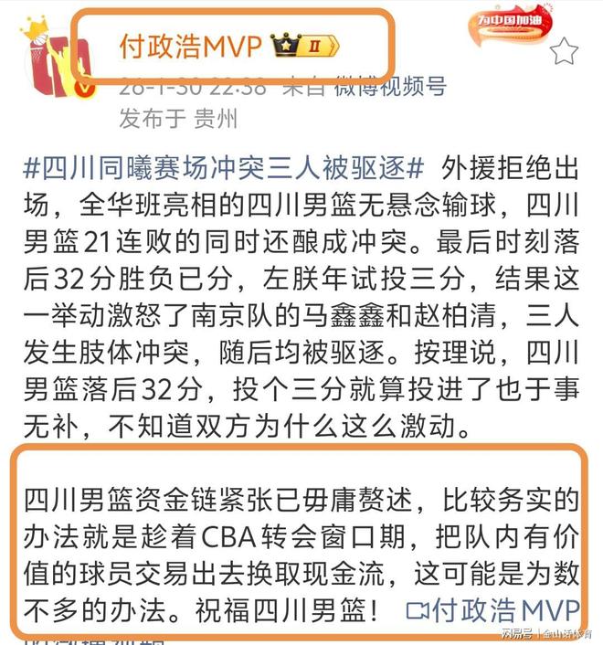 “把队内有价值的球员交易出去,换取现金流”,可问题是这样一来,四川队还有必要在CBA继续“混”下去吗?不知道各位网友大神,觉得四川队目前该怎么办?
